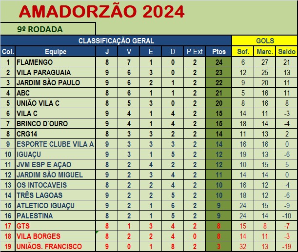 A competição continua até o dia 1º de dezembro, quando a final será disputada em jogo único. O Amadorzão Zynbet 2024 é organizado pela Liga Iguaçuense de Futebol (LIF).