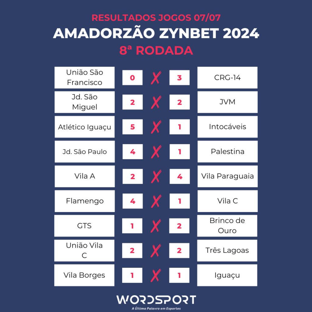No último domingo, 07 de julho, foram realizados os jogos da 8ª rodada do Amadorzão 2024 em Foz do Iguaçu. As temperaturas estavam abaixo de 10ºC, e as equipes fizeram bons jogos. Confira os resultados da rodada.