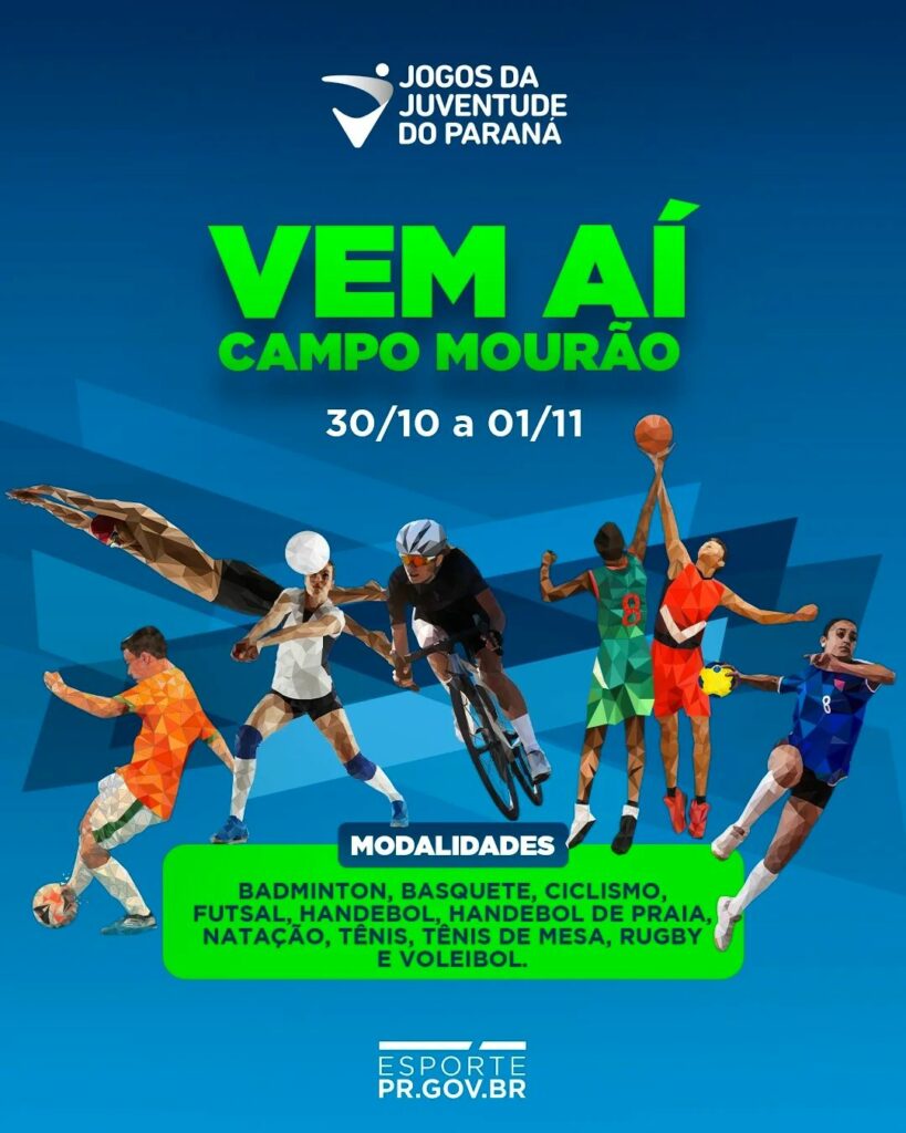 Entre os dias 29 de outubro e 1º de novembro, a etapa final dos Jogos da Juventude do Paraná (Jojups) 2024 reúne em Campo Mourão jovens atletas de todo o estado, para disputar o pódio em 11 modalidades esportivas.