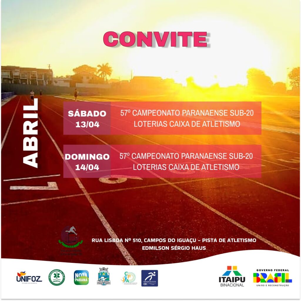 Este fim de semana, Foz do Iguaçu será o ponto de encontro para mais de 150 atletas de todo Paraná que vão participar do 57º Campeonato Paranaense Loterias Caixa de Atletismo Sub-20. O evento será aberto ao público com entrada franca.