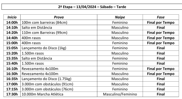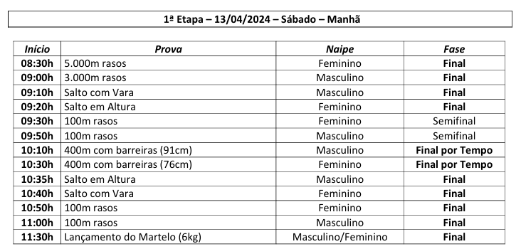 As provas terão início no sábado, com horário marcado das 7h30 às 12h, e serão retomadas na parte da tarde, das 13h às 18h. Confira abaixo a programação completa: