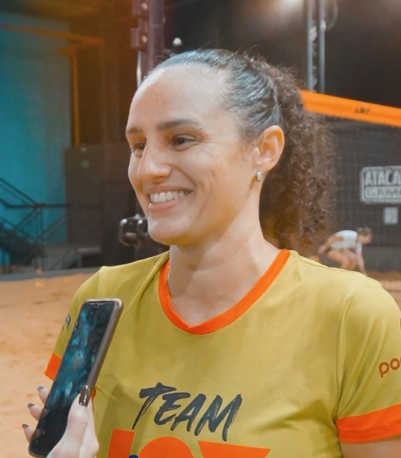 “Comecei jogar há um ano, o Beach foi o primeiro esporte que pratiquei na vida por influência da minha sogra. Ela joga desde que a modalidade chegou na cidade. Depois de muito insistir e até dar uma raquete de presente pra mim e meu esposo, nos rendemos. Desde a primeira vez amamos e não paramos mais. Consigo perceber os benefícios em várias áreas da minha vida: no relacionamento, área profisisonal, social, sem contar a saúde.”
