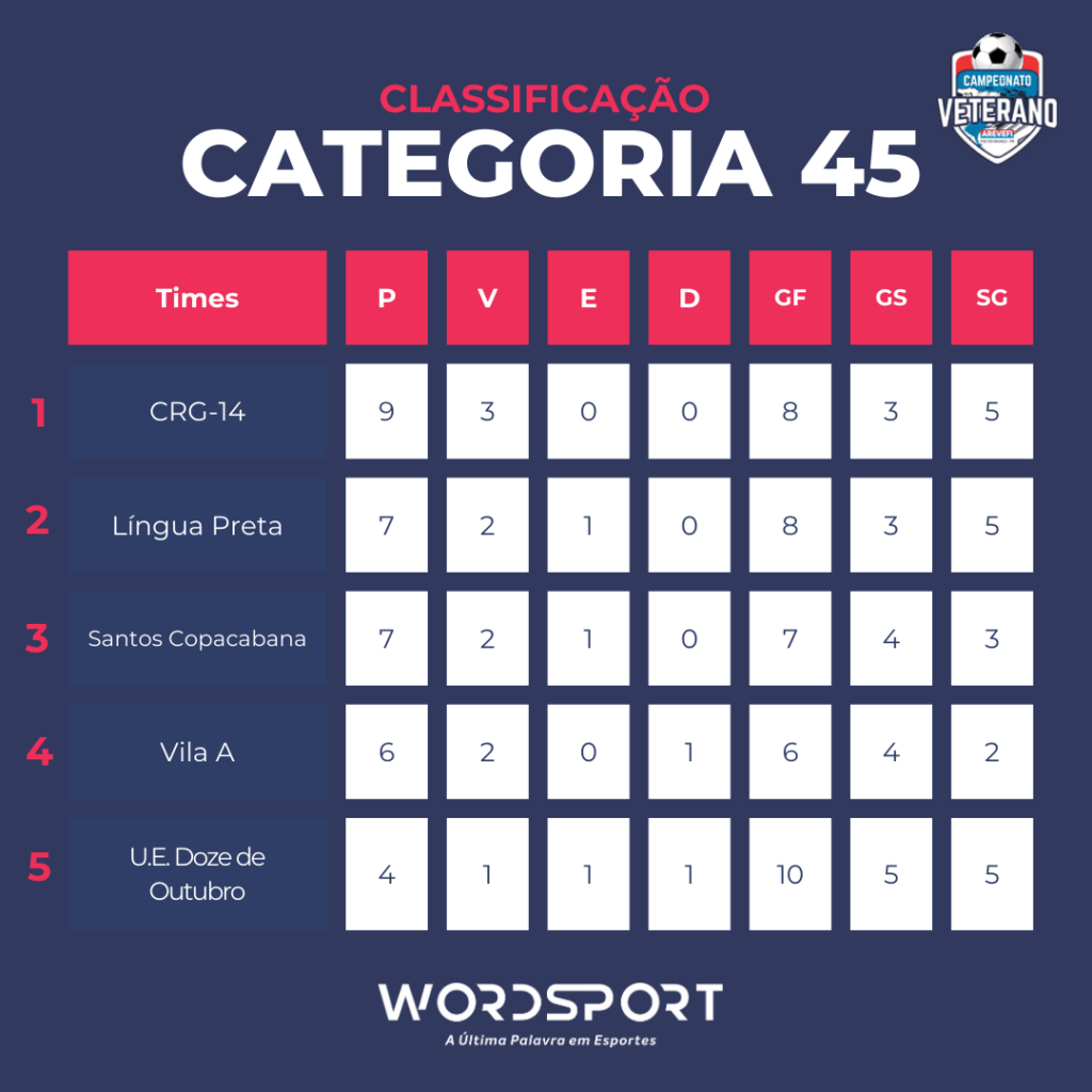Categoria 45 anos: CRG-14 assume liderança isolada com campanha impecável
