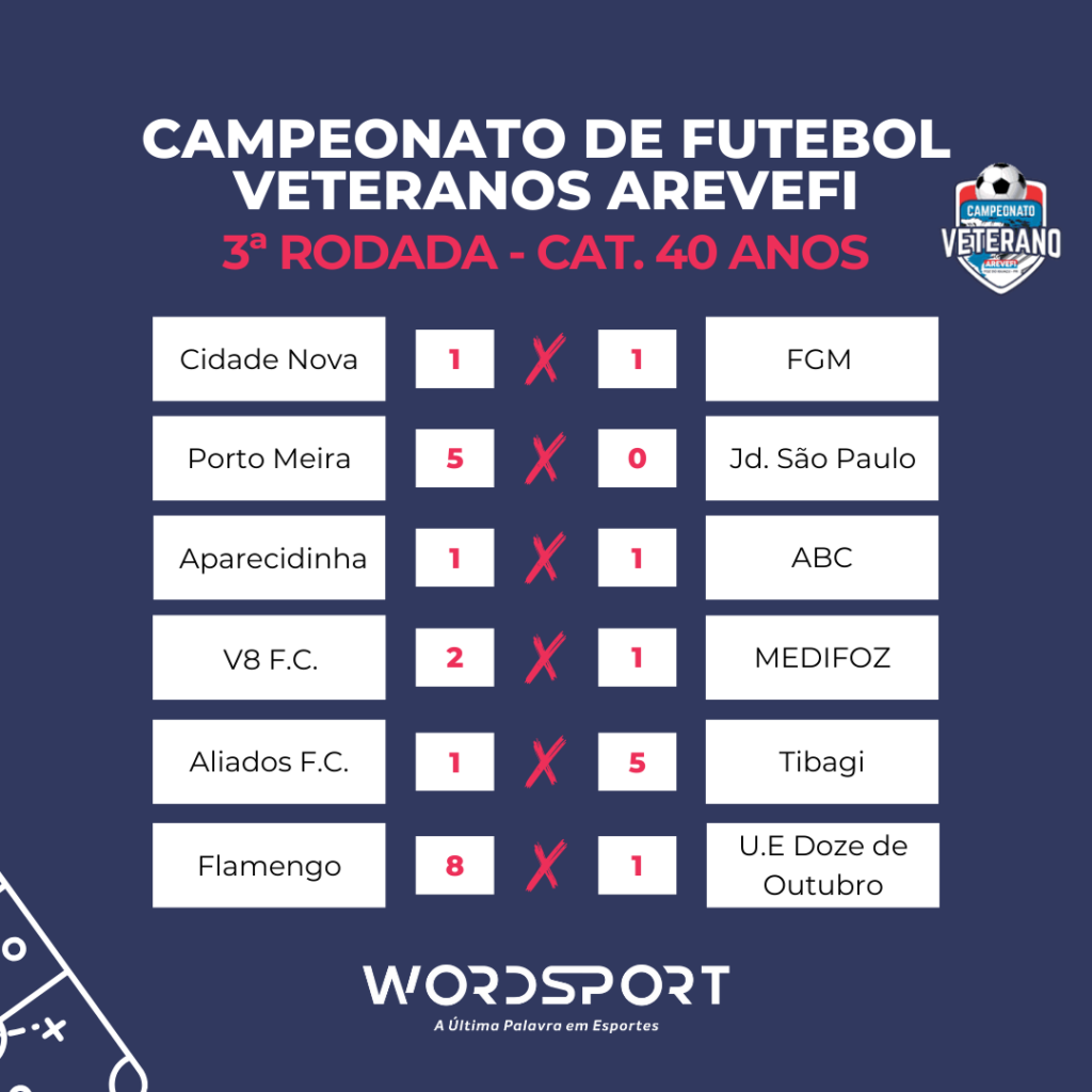Na terceira rodada da categoria de 40 anos do Campeonato Veterano Arefevi, o Flamengo foi o grande destaque ao demonstrar superioridade em campo. A equipe venceu com facilidade a U.E. Doze de Outubro por um impressionante placar de 8 a 1, consolidando-se na liderança isolada da competição.