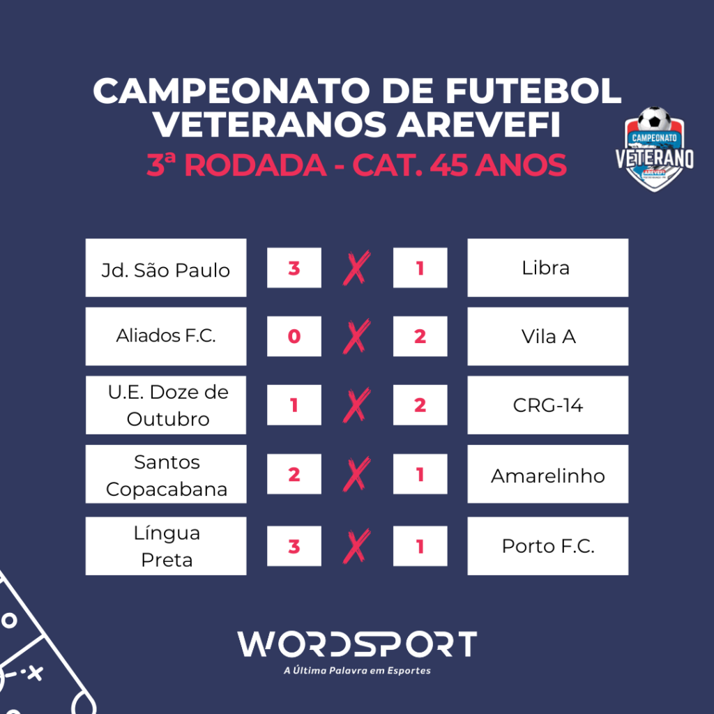 Na terceira rodada da categoria de 45 anos do Campeonato Veterano Arefevi, o CRG-14 foi a única equipe a manter-se invicta, sem empates ou derrotas, consolidando-se na liderança isolada da competição. Enquanto os demais jogos da rodada foram marcados por resultados equilibrados, o CRG-14 destacou-se pela consistência e eficiência em campo.