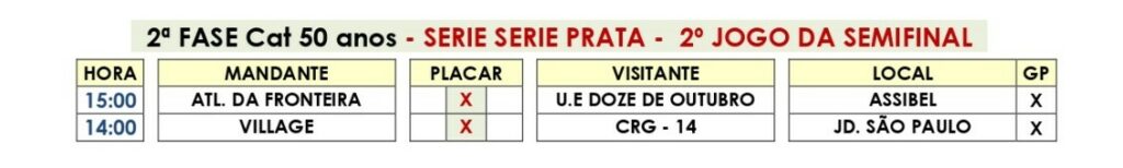 Categoria 50 anos – jogos de volta