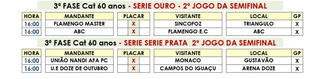 Categoria 60 anos – semifinal jogos de volta