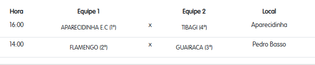 Categoria 40 anos – semifinal, jogos de volta