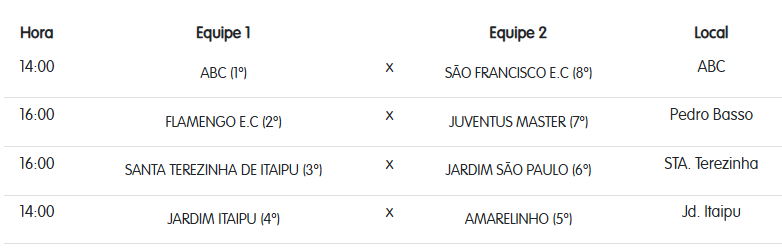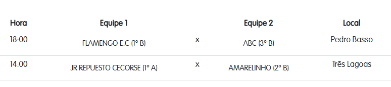 Confira os locais e horários das partidas em cada categoria: