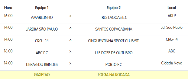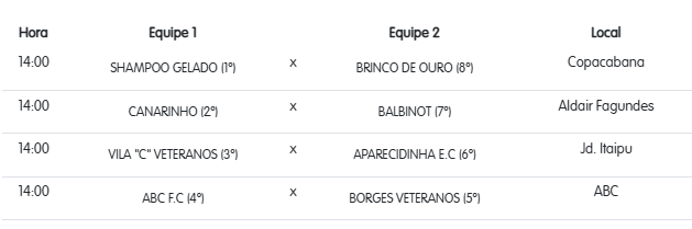 Confira os locais e horários das partidas em cada categoria: