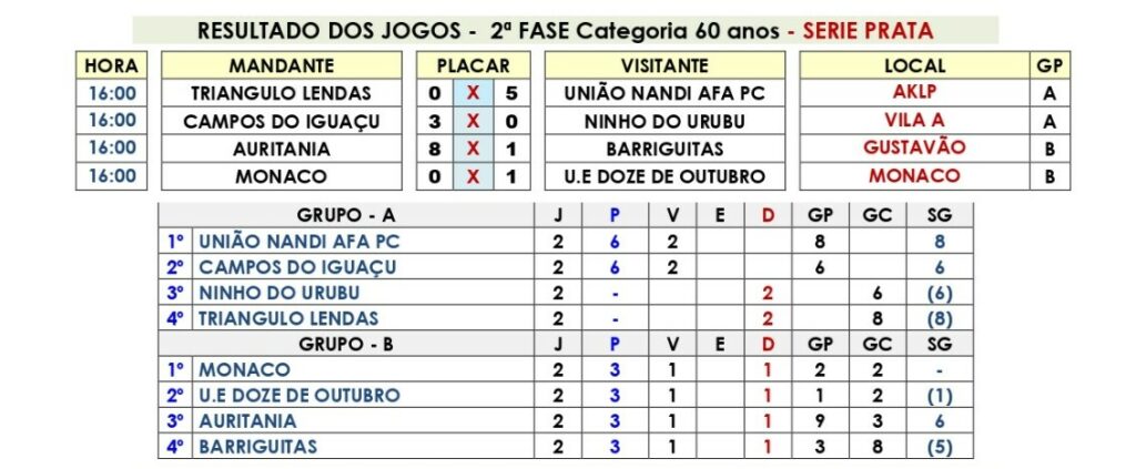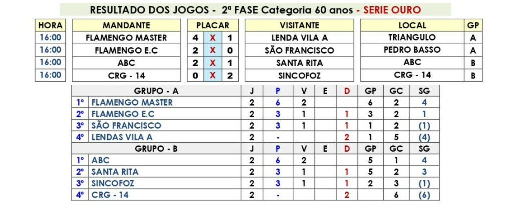 Na categoria 60 anos, foram realizados 4 jogos simultâneos. Série Ouro: