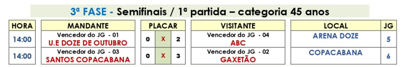 45 anos – semifinal, jogos de ida