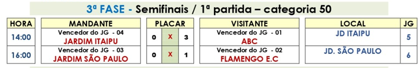 50 anos – semifinal, jogos de ida