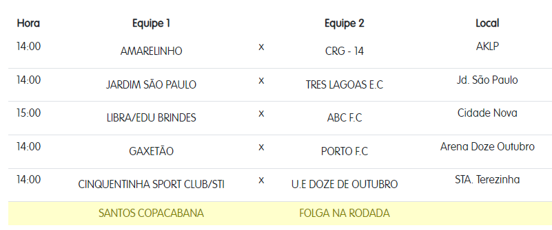 Veja os locais e horários de cada categoria: