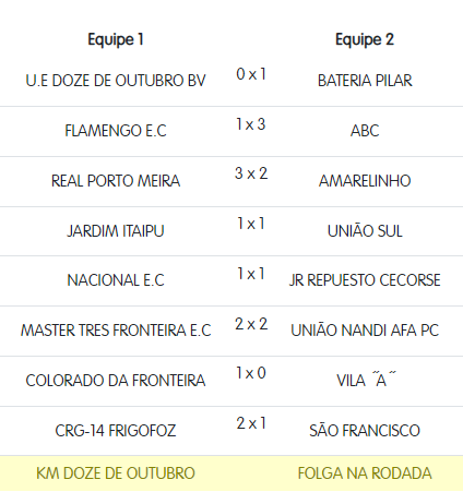 No sábado, dia 27 de abril, foram realizados os jogos do Campeonato de Futebol Veterano Arevefi em Foz do Iguaçu. Confira abaixo os resultados das partidas de cada categoria.