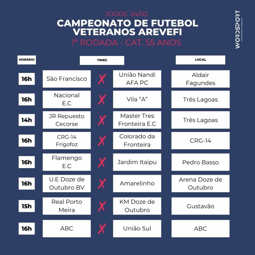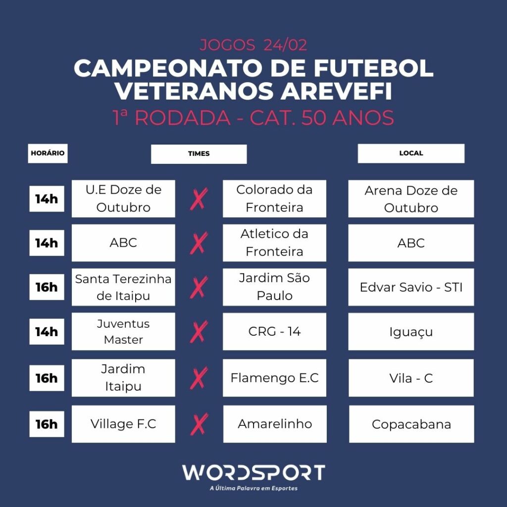 Neste sábado, dia 24 de fevereiro, acontece os jogos de estreia do Campeonato de Futebol Veterano da Associação Arevefi de Foz do Iguaçu, o maior campeonato de veterano do Brasil. A competição segue até junho, e conta com a participação de cerca de 77 equipes de 6 categorias.