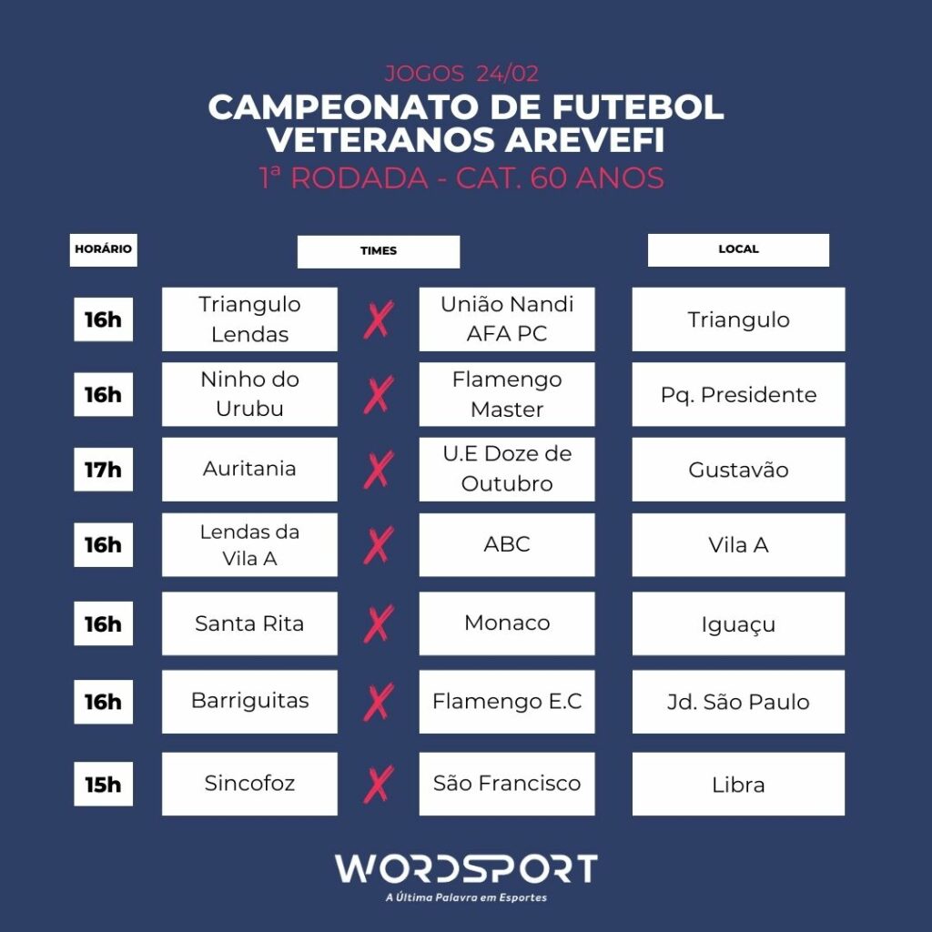 Neste sábado, estreia as categorias: 40 anos, 50 anos, 55 anos e 60 anos. Confira os campos e horários: