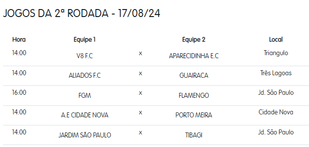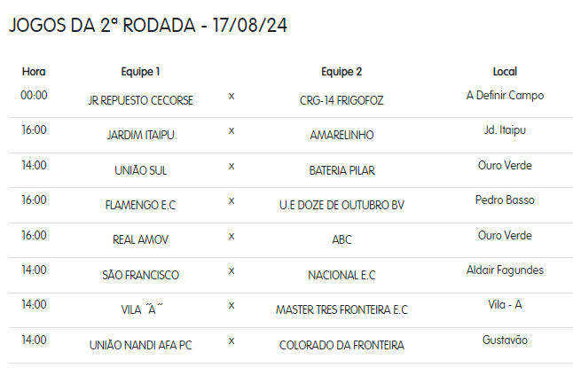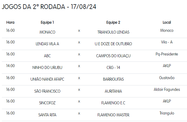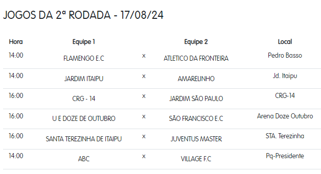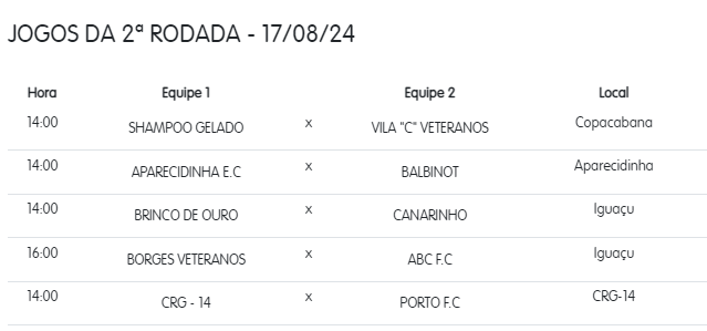 No sábado, 17 de agosto, serão realizados os jogos da 2ª rodada do Campeonato Veterano da Associação Arevefi de Foz do Iguaçu. A competição segue até dezembro.