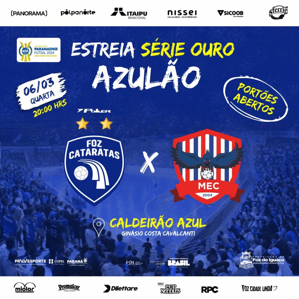 A partida, que marca o início da campanha em busca do tricampeonato paranaense, será com portões abertos para a torcida. O jogo do Foz Cataratas contra o Mangueirinha será nesta quarta-feira, 6 de março, às 20 horas, no Costa Cavalcanti, o Caldeirão Azul. Não haverá cobrança de ingresso.