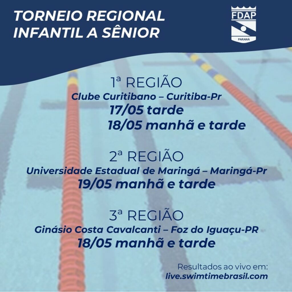 No sábado, dia 18 de maio, Foz do Iguaçu irá sediar o Torneio Regional Infantil a Sênior de Natação. O evento será realizado no Ginásio Costa Cavalcanti durante todo o dia.