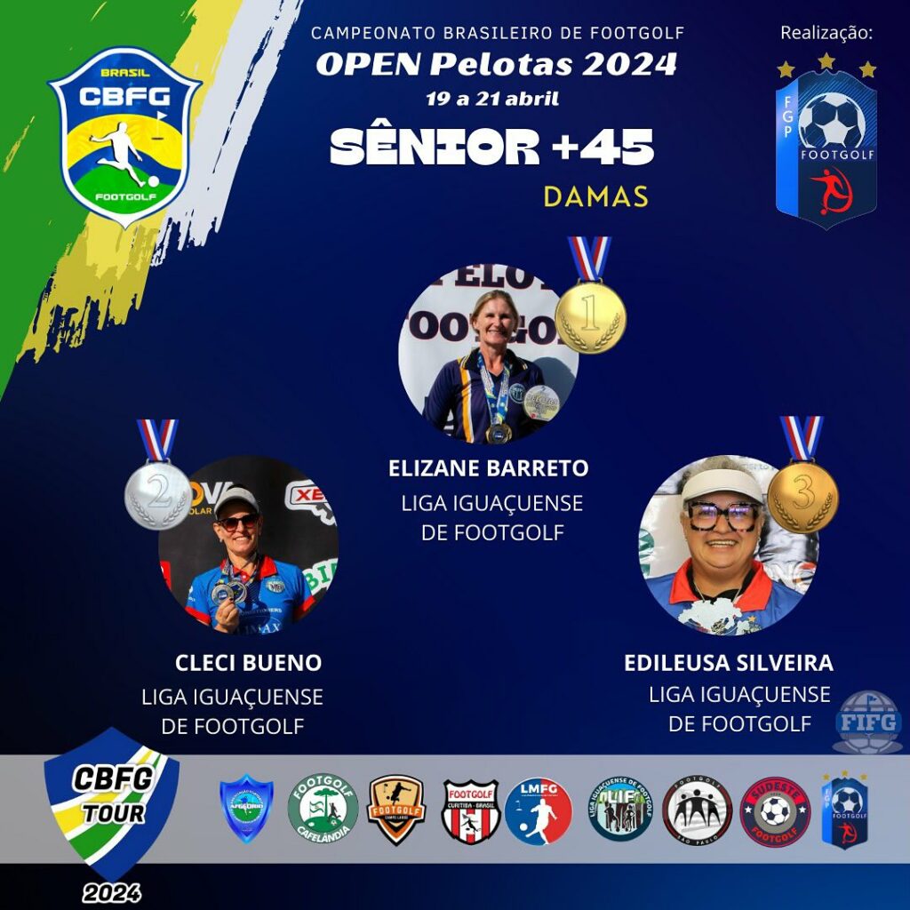 - Sênior + 45 damas – Elizane Barreto, 1º lugar | Cleci Bueno, 2º lugar | Edileusa Silveira, 3º lugar.