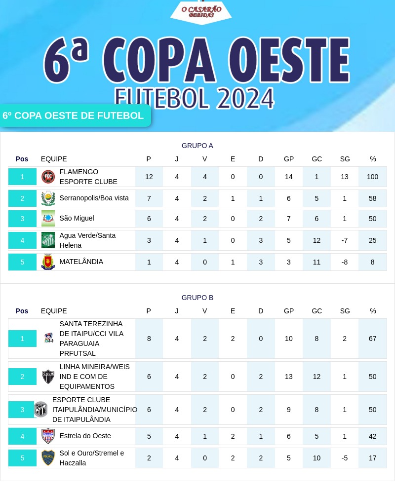 Com o encerramento da fase de grupos, o líder do Grupo A, agora se prepara para enfrentar o Estrela do Oeste (Missal) nas quartas de final.
