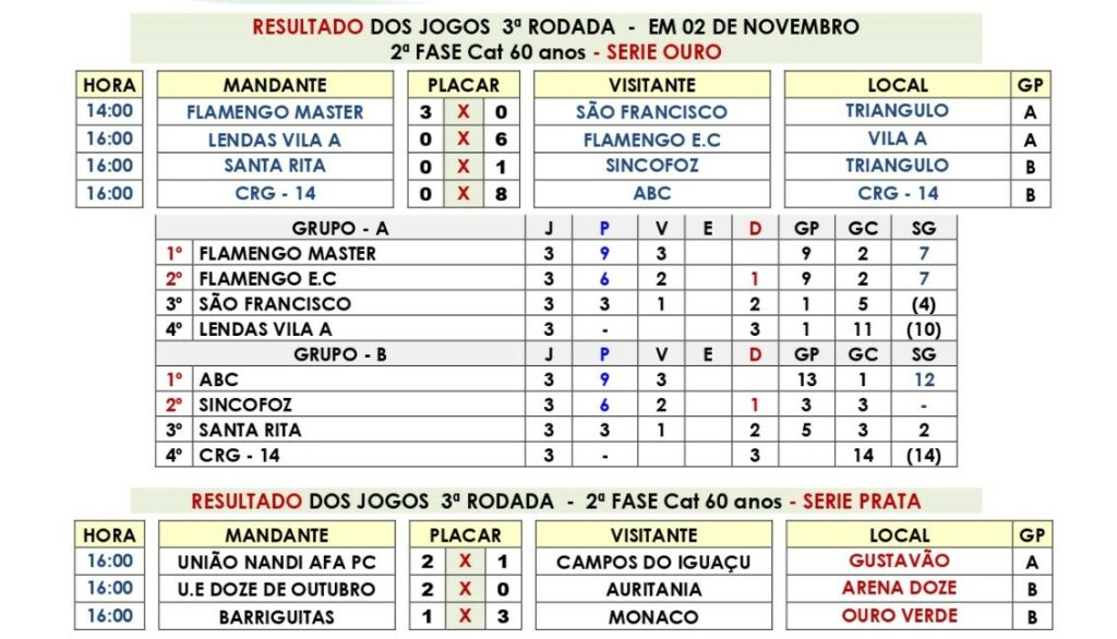 Na categoria 60 anos, foram realizados 4 jogos simultâneos. Série Ouro e Prata: