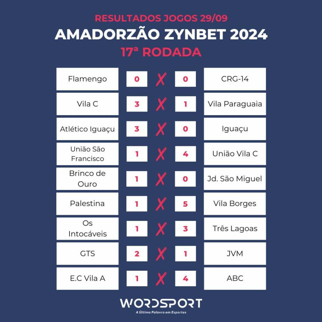 No último domingo, 29 de setembro, foram realizados os jogos da 17ª rodada do Amadorzão 2024 em Foz do Iguaçu. Confira os resultados.
