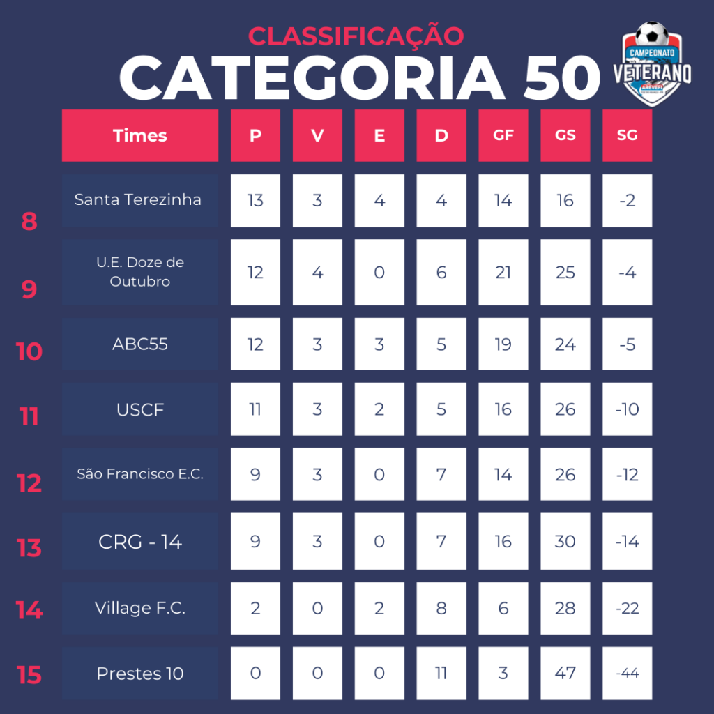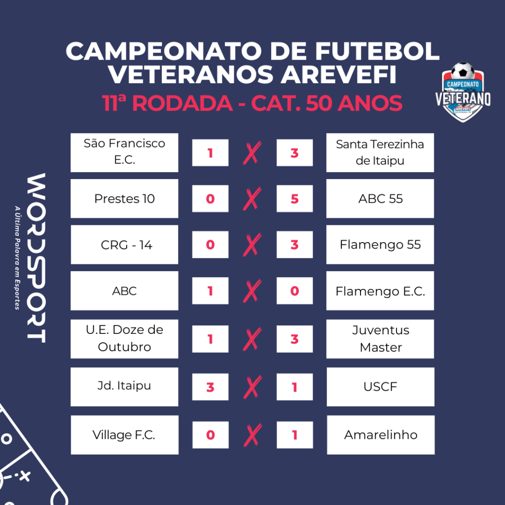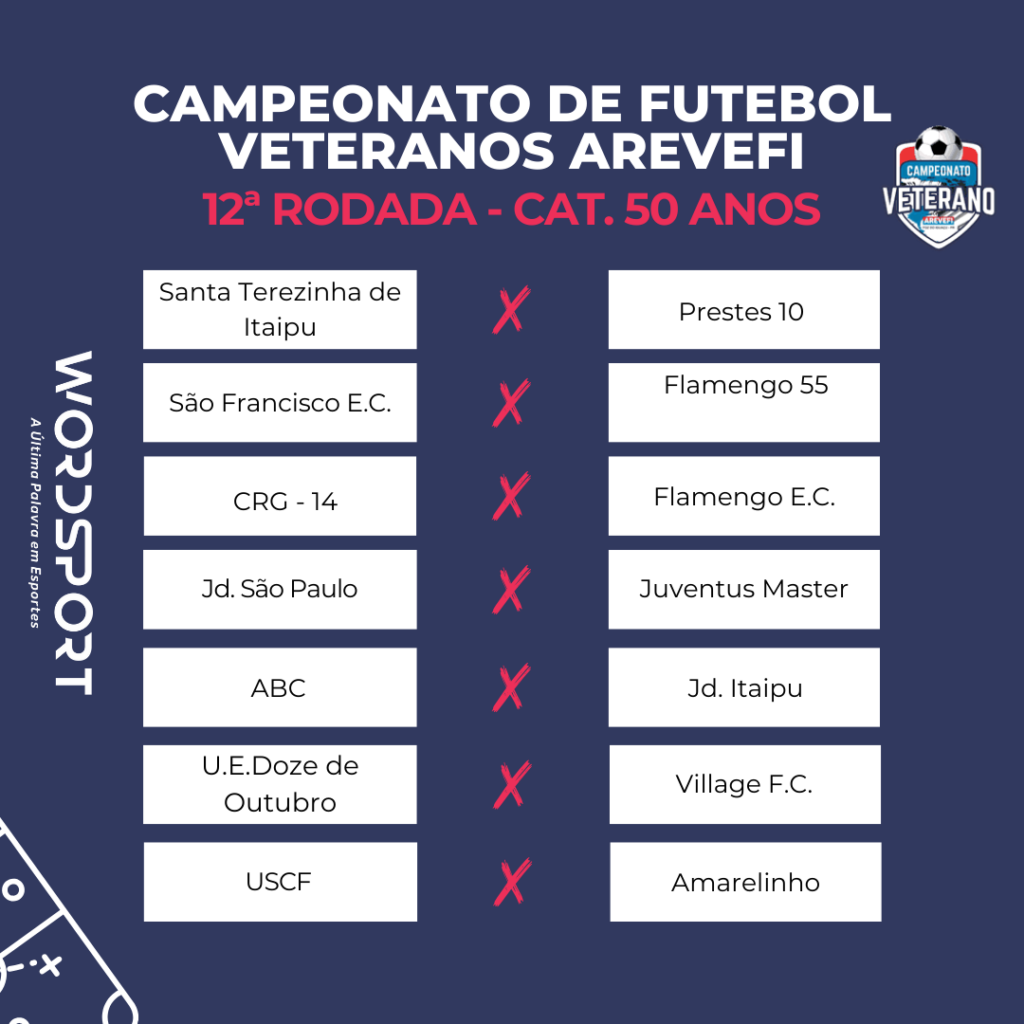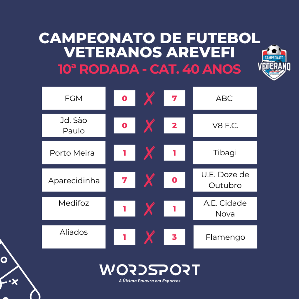 Fechando a rodada, a categoria 50 teve jogos muito disputados e com placares importantes para a definição da tabela. A equipe do V8 F.C. conquistou uma vitória fora de casa, enquanto Flamengo e Aliados protagonizaram um jogo movimentado. Os empates em outros confrontos mostram como o nível segue equilibrado entre os veteranos.