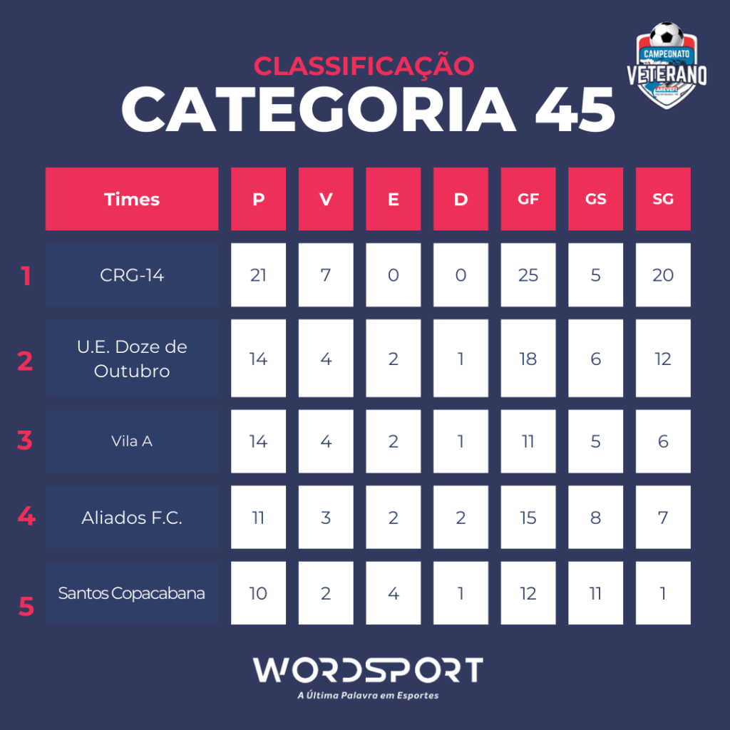 O CRG-14 segue firme como o grande favorito. O time manteve a invencibilidade e ainda sustenta uma vantagem sólida na liderança, demonstrando consistência e controle absoluto da competição até aqui.