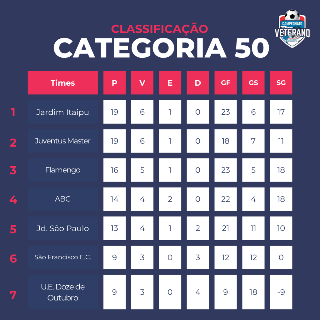 Com o Flamengo E.C. de folga na rodada, quem aproveitou foi o Jardim Itaipu e o Juventus Master, que assumiram a dianteira. O campeonato segue com um dos cenários mais disputados entre todas as categorias, especialmente na parte de cima da tabela.