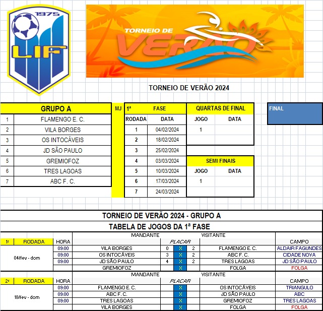 No último domingo, dia 04 de fevereiro começou o Torneio de Verão de Futebol Amador em Foz do Iguaçu, organizado pela Liga Iguaçuense de Futebol. O campeonato abriu a temporada de competições do ano.
