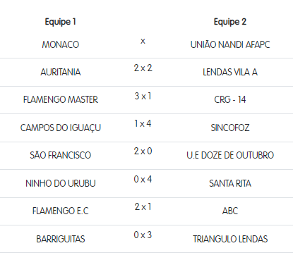 No último fim de semana, foram realizados os jogos da 6ª rodada do Campeonato de Futebol Veterano da Associação Arevefi de Foz do Iguaçu. Veja os resultados.