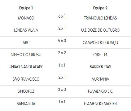 Na categoria 55 anos, foram realizados 8 jogos simultâneos, o destaque ficou para o time do Flamengo, que ganhou de 9×0 do U.E Doze de Outubro. Veja a classificação aqui.