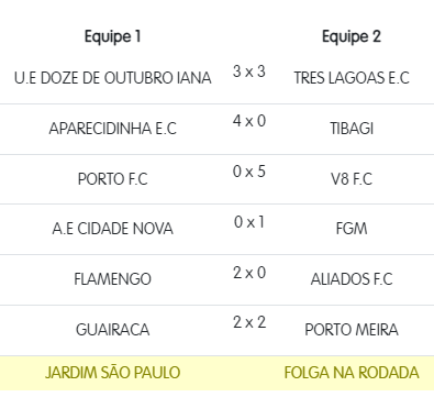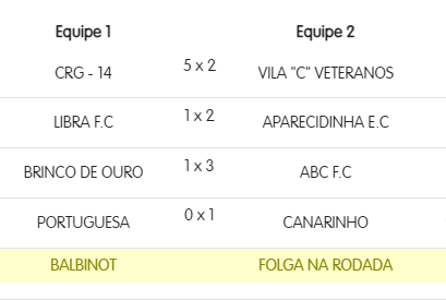 Veja os resultados dos jogos de sábado (23) do Campeonato Veterano