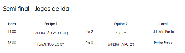 A final da categoria 45 anos entre Jd. São Paulo e Santos Copacabana que estava prevista para o sábado dia (30) foi remarcada para o sábado, 6 de julho.