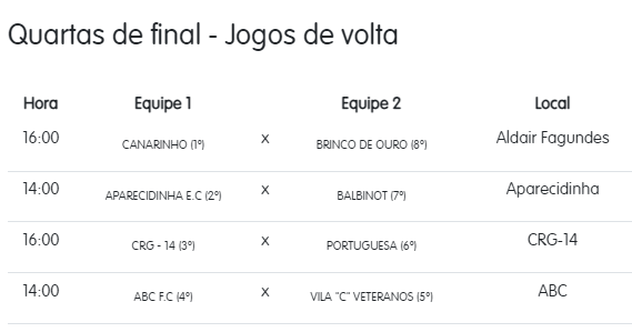 A previsão é de que a final do campeonato Veterano seja realizada neste mês de junho. Os times vencedores do 1º, 2º e 3º lugar do campeonato ganham, respectivamente, R$ 3 mil + troféu e medalha, R$ 2 mil + troféu e medalha e R$ 1 mil + troféu e medalha.